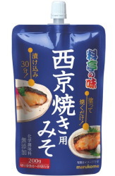 味噌は「マルコメ料亭の味 西京焼き用みそ」を使いました。この西京焼きの素は安くてお得です。ネットのヨドバシドットコムで135円で購入しました。結構いい味してます。