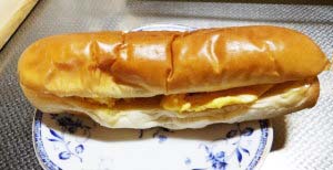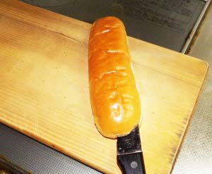 また、切れていないのが良いですね。普通のホットドック用パンは上から縦に切れ目が入っていますが、これって結構食べづらいです。ソーセージを入れるとトッピングがはみ出してしまい食べるときの持ち方が横を押すような形になるのでソーセージも上に上がってしまいます。