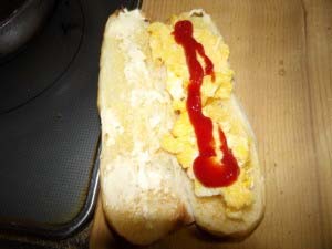 この味付けロールは、切れ目が入っていなく、また横幅もそこそこあるので横に切れ目を入れて食材を挟めばこぼれないし食べやすいです。