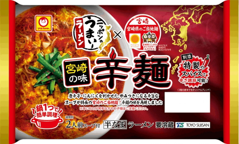 東洋水産の商品名は、マルちゃん「ニッポンのうまい!ラーメン 宮崎の味 辛麺 2人前」ということです。