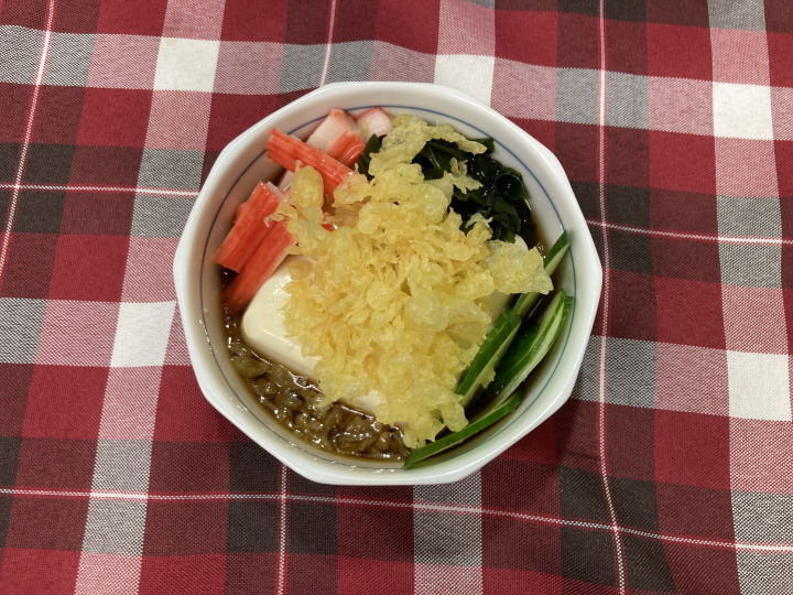 そこで今回は「たぬき豆腐」にしてみました。これは赤羽の「まるます家」で食したものをまねてみました。