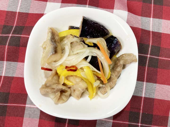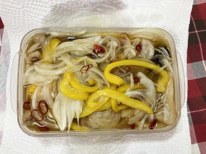 しかし定番のアジの南蛮漬けばかりだと飽きるので、今回はナスと豚バラを加えてみました。
