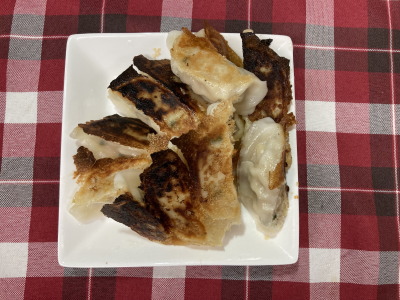 写真を撮る前に調理器具を洗ったりしていて手間取り完全麺がのびてしまいました。餃子は一袋全部焼いたら皿に盛りきらず…、本当に見た目がマズそうですね。