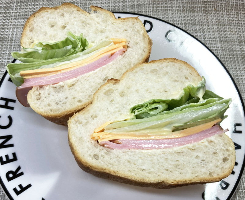 ・パリジャン ・マーガリン ・辛子またはワサビ ・マヨネーズ・ハムまたはパストラミビーフ ・スライスチーズ ・レタス