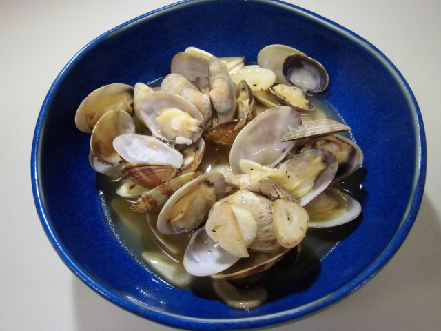 あさりバターの酒蒸し「あさりバター」も「あさりの酒蒸しも」も好きなおつまみなので、これを合体させた「あさりバターの酒蒸し」を作りました。材料あさり1パックニンニク1片バター10g日本酒適量好みで万能ネギ適量好みでパセリ適量塩水の量の3%作り方あさりの殻を拝み洗いして殻の筋に入っている汚れをよく取る。ボウルに水適量にその水の量の3%の塩を加え海水を作る。②に底が付かない大きさのザルを入れ、その中にあさりを入れアルミ箔で蓋をし冷暗な場所で一晩砂抜きをする。フライパンまたは鍋にバターとスライスしたニンニクを入れ弱火で香りが立つまで炒める。あさりを入れバターを全体にからませたら酒を入れ蓋をし、あさりの殻が開くまで煮る。器に⑤を盛り、好みで万能ネギの小口切りかパセリのみじん切りをのせて完成。※あっさり目に、しかも簡単に作りたい時は、器に材料を全部入れラップをして殻が開くまでレンチンすればOK。 ツイートこのページの先頭へ戻る Top Menu