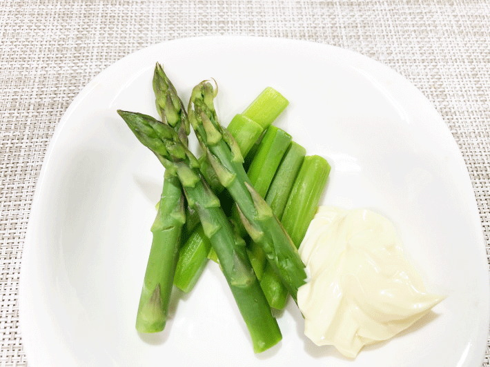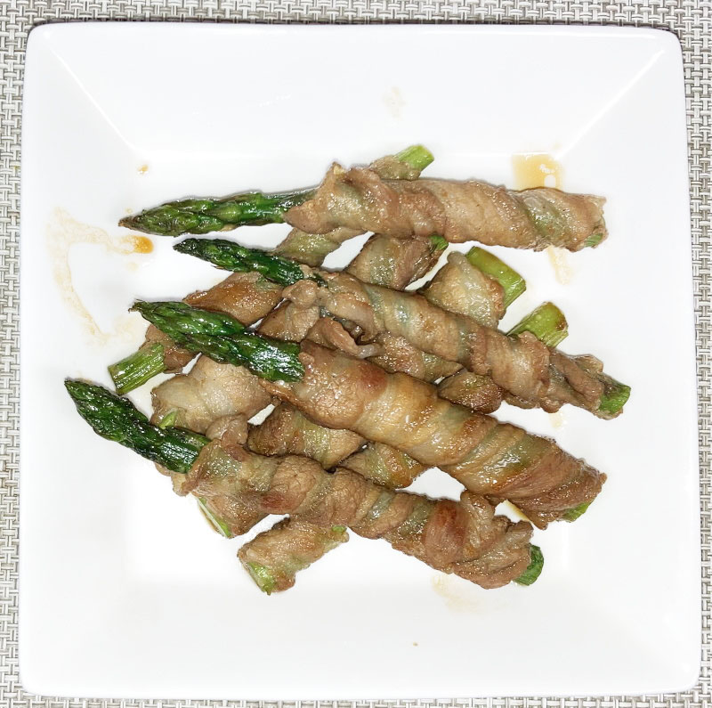 アスパラの甘辛肉巻き材料・アスパラ …… 4本・豚バラスライス …… 4~8枚(アスパラ・豚バラの長さによる)・塩コショウ …… 適量・サラダ油 …… 小さじ1~2・A:酒 …… 大さじ2 ・A:みりん、醤油 …… 各大さじ1・A:砂糖 …… 小さじ1~2(好みで)作り方アスパラの根元近く、筋張ってかたい部分の皮をピーラーでむく。アスパラをさっと茹で(20~30秒位)、粗熱を取っておく。②が冷めたら豚バラを巻き、巻き終わりを下にして押さえつけてから、塩コショウをまぶし半分にカットする。フライパンに油を引き、③を巻き終わりを下にして中弱火で焼く。焼き色がついたらひっくり返し、全面に焼き色をつけるフライパンの余分な脂をキッチンペーパーなどで拭き取る。Aを加え、転がしながら全体に絡めたら完成。 ツイートこのページの先頭へ戻る Top Menu
