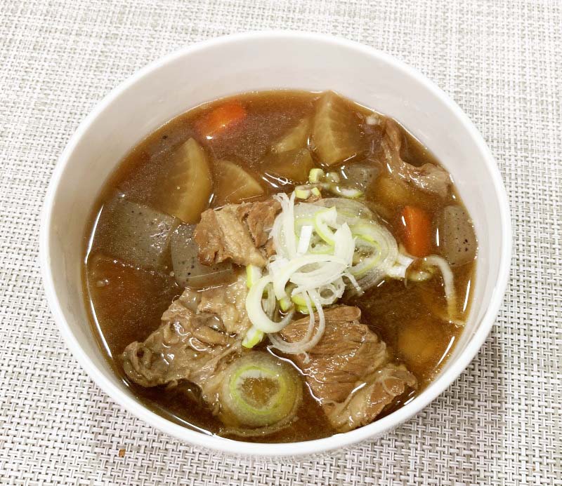 とろとろ「牛すじ煮込み」居酒屋で食べる牛すじ煮込みは美味しいですね。最近は家飲みばかりなので自分で作りました。材料(1人分)牛すじ150g長ネギの青い部分1本分ショウガ2片大根10㎝程度好みで人参適量こんにゃく1/2枚A:しょう油大さじ4A:酒大さじ3A:砂糖大さじ3A:味噌大さじ2薬味ネギ適量作り方牛すじを水でよく洗ってから鍋に入れ、全体が浸るほどの水を加えて中火で火にかける。沸騰したらアクをとり、10分煮込む。茹で汁を捨て、ザルにいれて水で洗い流す。再び鍋に入れ、全体が浸るほどの水を再び加える。、長ネギの青い部分と生姜を加え、再びアクをとりながら弱火で2時間下茹でする。下茹でが終わったら、長ネギと生姜を取り出す。牛すじのみを別の鍋に入れ、浸る程度の水とAを加えて1時間弱火で煮込む。こんにゃくは5ミリ厚に切り下茹でする。大根と人参は厚めのいちょう切りにする。⑥に大根とこんにゃくを入れ、1時間弱火で煮込む。器に盛り、薬味ネギ、七味を散らして完成。 ツイートこのページの先頭へ戻る Top Menu
