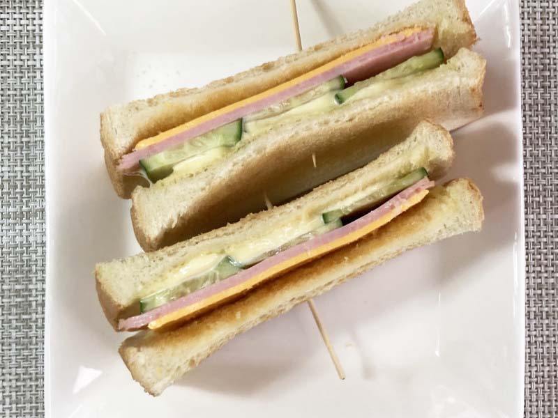 ホットサンドメーカーとバーガー袋[山善] 具だくさん 耳付きで焼ける ホットサンドメーカー YSB-S420(B) [メーカー保証1年]具だくさんのホットサンド食べたくなり、新たにこのホットサンドメーカーを購入しました。「山善」のものです。Amazonで一通りのホットサンドメーカーを調べてみたのですが、真ん中だけ膨らんでいるアーチ状のものはコレだけでした。厚焼きのものでは山善のものが一番値段が安かったのも評価ポイントです。最初に作ってホットサンドです。具はスライスチェダーチーズ、ロースハム、玉ねぎの輪切り、トマトの輪切り、ゆで卵です。6枚切りのパンを使ったのですが、想像した通り真ん中辺の部分はパンが潰されて薄くなりますが、許される範囲です。一番の問題点は、パンの耳の部分が通常のホットサンドメーカーのようにピッタリくっつきません。そのため食べるときに端の部分から具材がどんどん出てきてしまいます。焼けたパン自身が硬くなっているので手で押さえてもピッタリとは行きませんでした。この解決策として、ハンバー袋を使いました。さすがにこの袋を使うとこぼれても手に付くこともなくキレイに食べられました。これはトマトを入れませんでした。前回はトマトの水分がダラダラ流れ出たので無しにしました。それから、最初はホットサンドメーカーの焼き部分にバターをたっぷり塗ったのですが、焼き上がりがカリカリになり過ぎてパンの美味しさが削がれてしまったので、油っけ無しの状態で焼いたみたら結構よかったです。このページの先頭へ戻る Top Menu