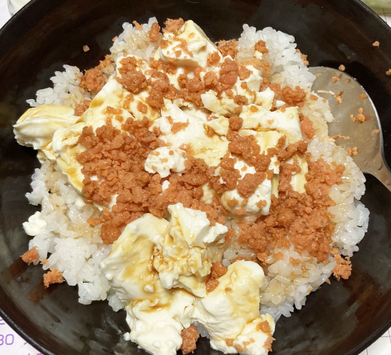 まぐろの鉄火丼と漬け丼めばちマグロの特売日に刺身用冊を買ってきました。ひとまず刺身を食べて、翌日に鉄火丼、翌々日に漬け丼を作ってみました。鉄火丼は冊1本を使いましたが、さすがに多すぎでした。漬け丼は冊半分を使いました。材料(丼ぶり1杯分)マグロの刺身or冊適量ご飯丼ぶり7分すし酢大さじ1刻み海苔適量大葉3枚白炒り胡麻適量寿司用ガリ適量ワサビ適量<漬けだれ> 濃口醤油大さじ1みりん大さじ2酒大さじ21.タレの材料を鍋に入れて火にかけ、一煮立ちしたら火を止めて、完全に冷ます。2.マグロの冊を薄めにそぎ切りしタレに漬け、冷蔵庫で約30分漬け込む。作り方<鉄火丼>丼ぶりにご飯を7文目ほど盛り、すし酢をかけ全体に絡めて、水気がなくなるまで冷ます。マグロの冊を薄めのそぎ切りにする。大葉は縦半分に切り、横方向に千切りにする。ご飯の上に刻み海苔、大葉の順に散らし、マグロをのせて完成。わさび醤油をかけて食す。<漬け丼>丼ぶりにご飯を7文目ほど盛り、すし酢をかけ全体に絡めて、水気がなくなるまで冷ます。ご飯の上に刻み海苔を散らし、漬けこんだマグロをのせ、上から大葉と白ごまを散らしワサビをのせて完成。 ツイートこのページの先頭へ戻る Top Menu