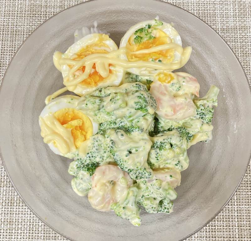 海老とブロッコリーのマヨネーズ炒め材料・むきエビ(小) …… 10~15尾・ブロッコリー …… 1株・片栗粉 …… 適量・オリーブオイルまたはサラダ油 …… 適量・A:酒・マヨネーズ・しょう油 …… 各大さじ1作り方エビは背ワタを取り塩水で洗い、クッキングペーパーで水気を切り、片栗粉を軽くまぶす。ブロッコリーは小房に分け、固茹でにする。Aを混ぜておく。フライパンにオリーブオイルを熱し、エビを炒める。エビに火が通ったらブロッコリーを加え少し炒め、③を加え回し炒めたら完成。 ツイートこのページの先頭へ戻る Top Menu