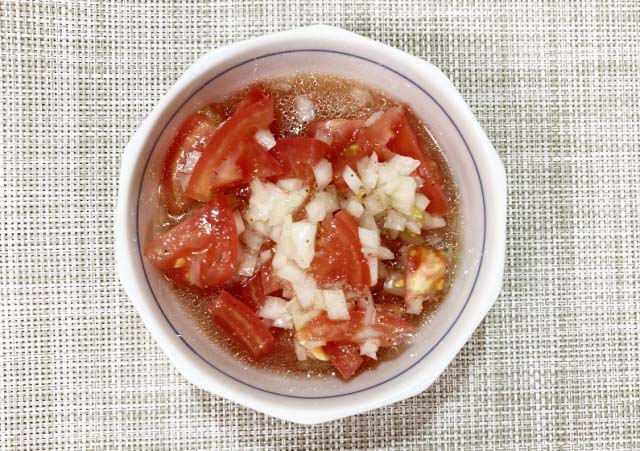 ガリトマト味のポイントはガリです。なるべく美味しいガリを使ってください。材料・トマト …… 1個・大葉 …… 3~4枚・寿司用ガリ …… 2つまみ・白炒りごま …… 適量・A:濃縮めんつゆ …… 大さじ1.5・A:ごま油 …… 小さじ1・A:オイスターソース …… 小さじ1/4~1/3・A:にんにくチューブ …… 2cm作り方ボウルにAを入れ、よく混ぜておく。トマトは1口大の乱切り、大葉は縦2等分し横細切り、ガリは漬けてある甘酢を良く切ってから粗みじん(5~10ミリ角程度)にする。②を①のボウルに加え全体を混ぜ合わす。器に盛り、白炒りごまを振りかけて完成。 ツイートこのページの先頭へ戻る Top Menu