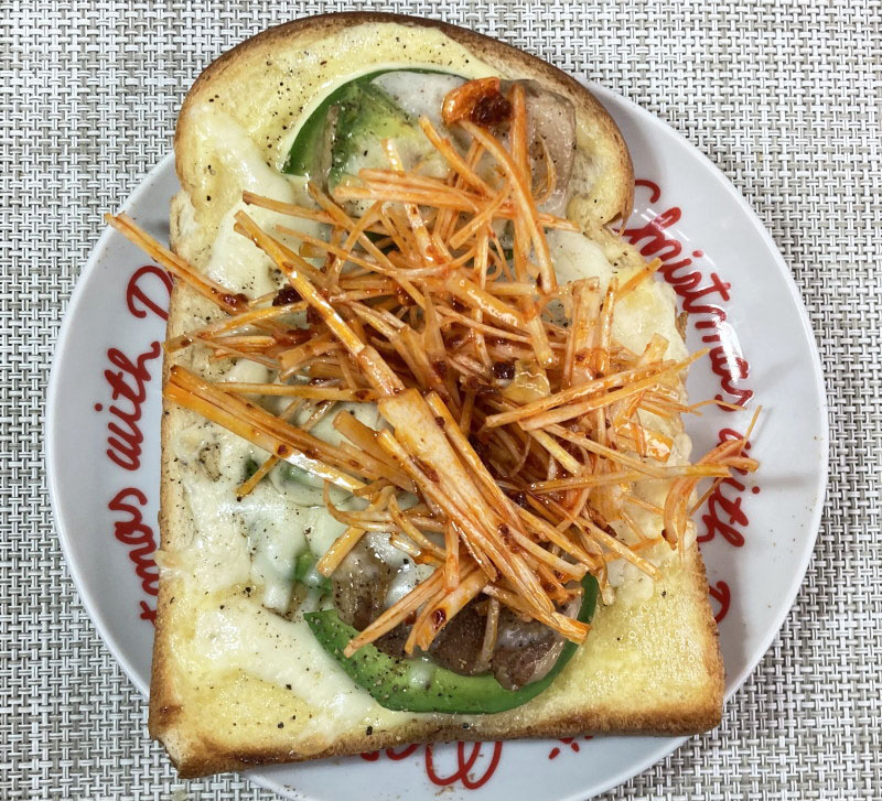 トマトの油揚げピザ小林ケンタロウさんのレシピです。ただ、このままだと味がイマイチパッとしないので、醤油と一味を振りかけてみました。材料・油揚げ …… 1枚・ミニトマト …… 3個・ピザ用チーズ …… 適量・オリーブ油、ブラックペッパー、醤油、一味 …… 適量作り方ミニトマトはヘタを取り、横3等分の輪切りにする。油揚げにミニトマトを並べてチーズを散らし、トースターでチーズが溶けて焼き目がつくまで焼く。皿に盛り、オリーブ油とブラックペッパーをかけて完成。食べる時に醤油と一味を少しかける。 ツイートこのページの先頭へ戻る Top Menu